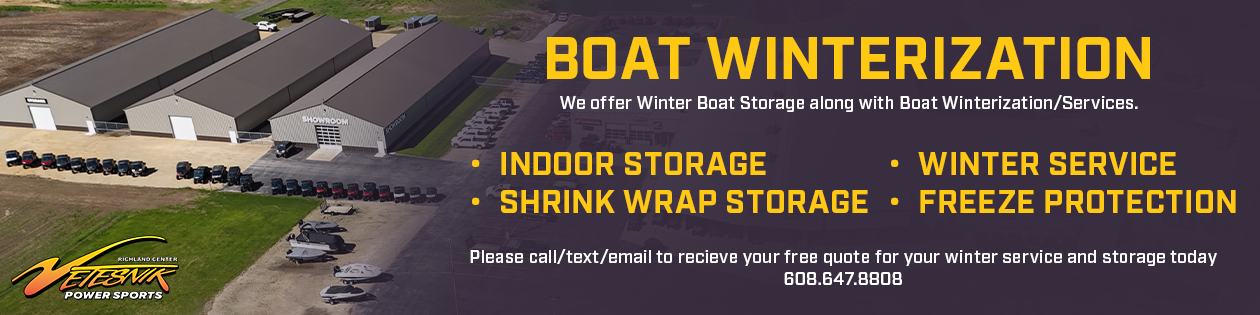 Don't forget to ask about our boat storage! We will store your Nitro, Sea-Doo, Sun Tracker, Tahoe, and Tracker Boats. to free up that space in your garage. Call or Text 608-647-8808!